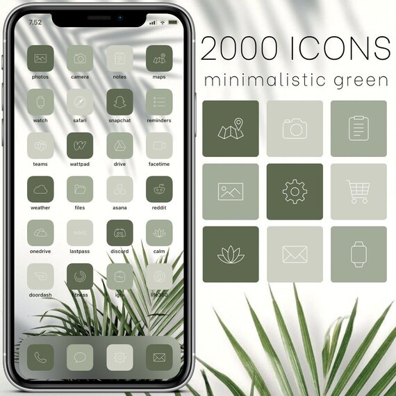 2000 Minimalistic Green Boho Ios App Icon Pack Ios 15 Etsy